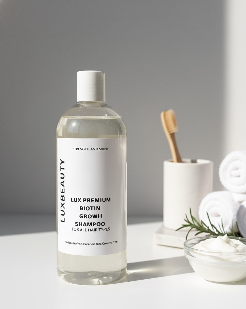 - Apply lux Biotin Growth Shampoo to the scalp and hair.